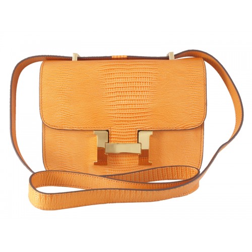 Hermes Constance 23 Pojedyncza torba na ramię ze skóry jaszczurki w kolorze pomarańczowym