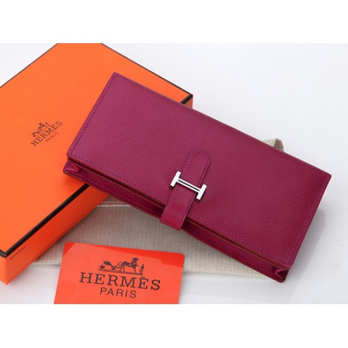 Hermes Epsom Original Calfskin Bearn Japonaise Bi-Fold Violet Red