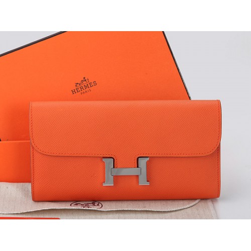 Hermes Epsom Original Calfskikin Constance Długi Portfel Pomarańczowy