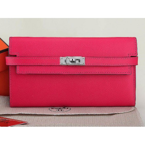 Hermes Epsom Original Calfskikin Kelly Long Wallet Hot Pink