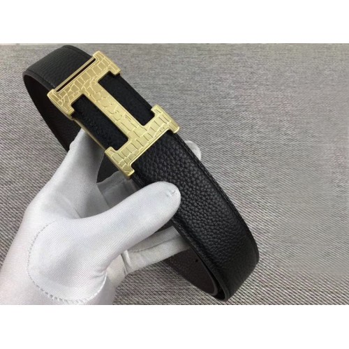 Pasek Hermes Gold H z klamrą i dwustronnym skórzanym paskiem w kolorze czarnym
