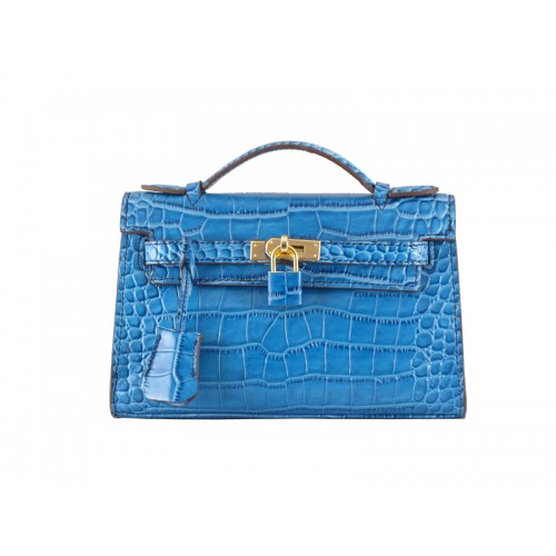 Hermes Matte Kelly Pochette Krokodyl Niebieski Roi