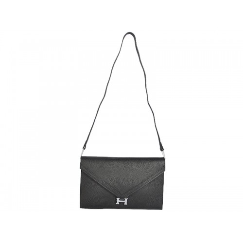 Hermes Pilot Envelope Clutch Black ze srebrnymi okuciami