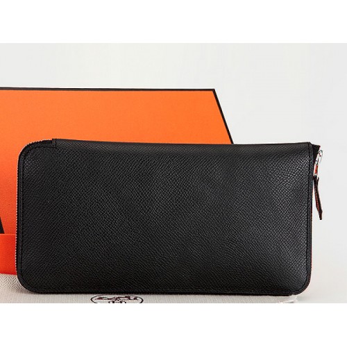 Portfel Hermes z zamkiem błyskawicznym, oryginalny, ze skóry cielęcej Epsom, czarny