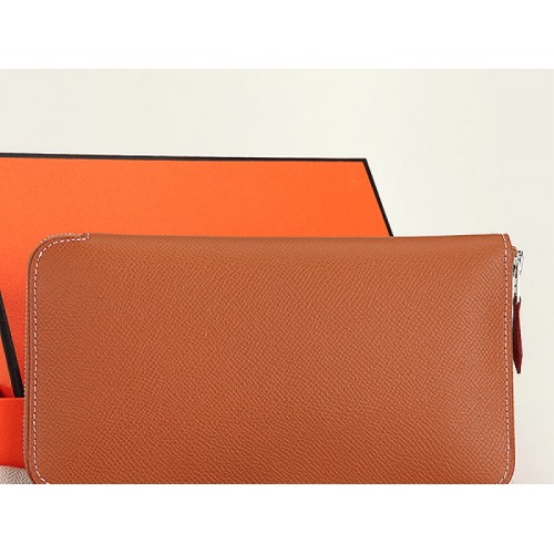 Portfel Hermes z zamkiem błyskawicznym, oryginalny, z cielęcej skóry Epsom, w kolorze camelowym