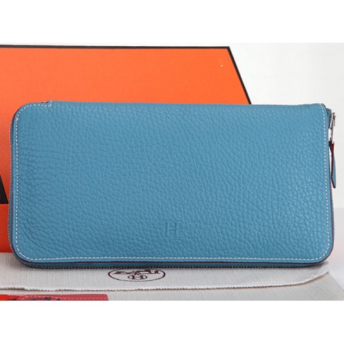 Hermes Portfel na zamek błyskawiczny Oryginalna skóra Przezroczysty niebieski