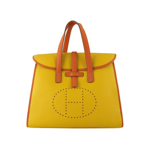 Hermes 08c Torba z klapką Żółta z pomarańczowym skórzanym wykończeniem