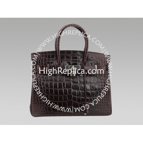 Nasza replika lustrzanego odbicia torby Hermes Birkin Bag została wykonana z imitacji krokodyla w najgłębszym czekoladowym brązie. Materiał ten jest idealny do toreb Birkin i niezwykle trudno go kupić jako autentyczną torbę. Bądź zazdrosny i cudowny dla wielu, gdy nosisz swojego pozorowanego krokodyla, replikę Hermesa Birkina!