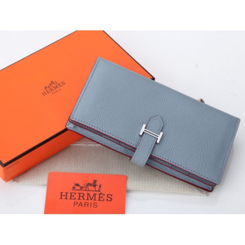Hermes Dogon Togo Oryginalny portfel cielęcy Bearn Japonaise Bi-Fold w kolorze jasnoniebieskim