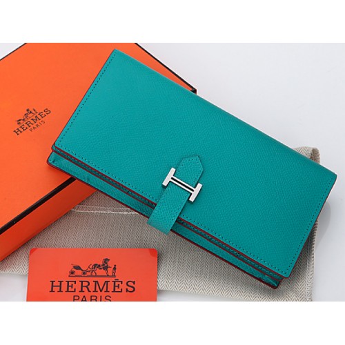 Hermes Epsom Original Calfskin Bearn Japonaise Dwustronny Portfel Turkusowy