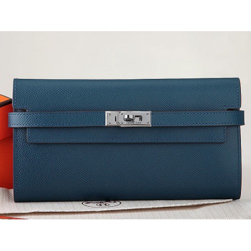 Hermes Epsom Original Calfskin Kelly Long Wallet Ciemnoniebieski