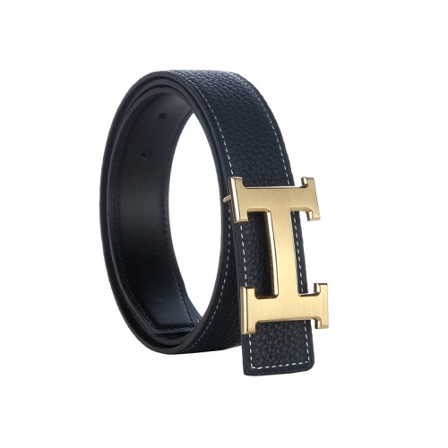 Szeroki pasek skórzany Hermes Togo ze złotą klamrą H w kolorze czarnym