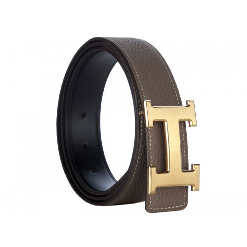 Szeroki pasek skórzany Hermes Togo ze złotą klamrą H w kolorze khaki