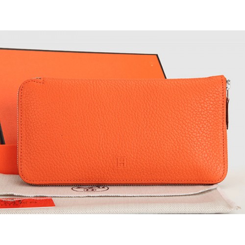 Hermes Portfel na zamek błyskawiczny Oryginalna skóra Pomarańczowy