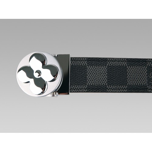 Pasek Louis Vuitton Damier Graphite z okrągłą, srebrną klamrą w kształcie kwiatu