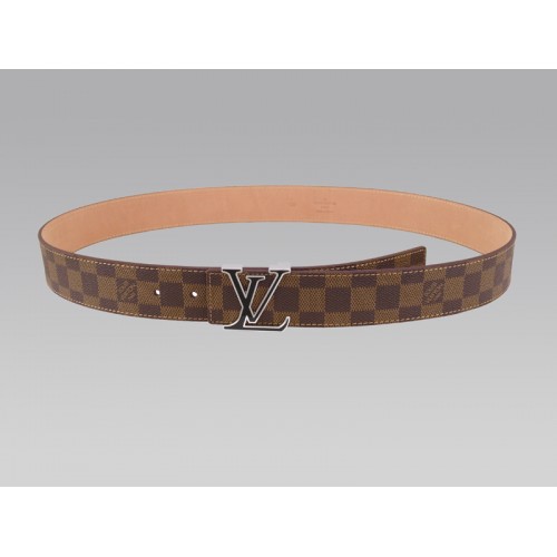 Pasek Louis Vuitton Initial Damier z czarną i srebrną klamrą
