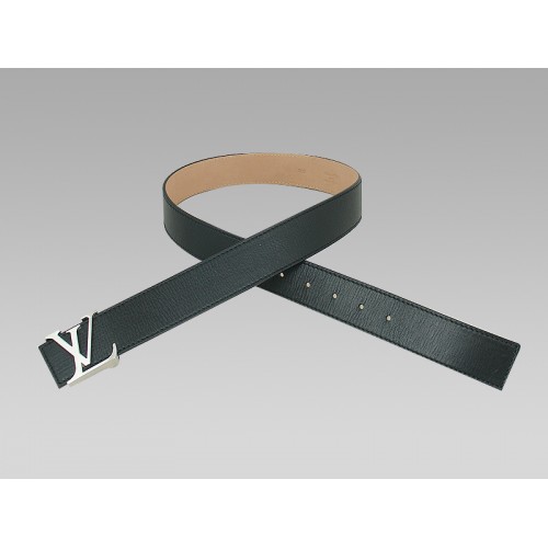 Czarny skórzany pasek z inicjałami Louis Vuitton ze srebrną klamrą
