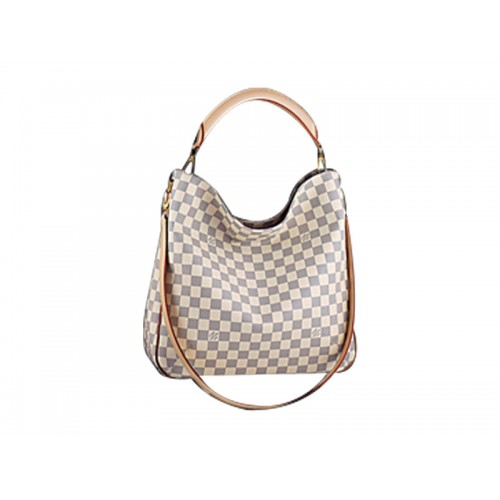 Ta płócienna soffi Louis Vuitton Damier Azur jest dostarczana z numerami seryjnymi i modelowymi, workiem przeciwpyłowym LV i kartami.