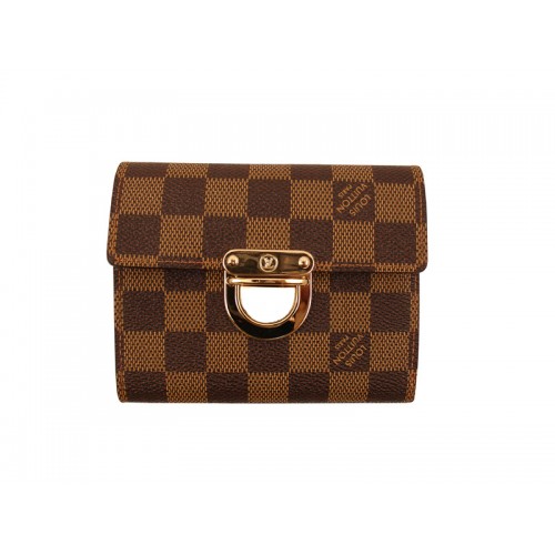 Ten funkcjonalny portfel marki Louis Vuitton wyróżnia się klasycznym płótnem Damier ze świeżymi, nowoczesnymi akcentami, takimi jak błyszczące, złote mosiężne zapięcie na zatrzask i żywa, czerwona skórzana podszewka. Z dużą ilością przegródek i kieszeni na karty, pieniądze i drobne, idealny towarzysz torby Damier.