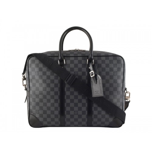 Lekka i bogata w przestrzeń wewnętrzną replika Porte-documents Voyage w Damier Graphite Canvas sprawi, że Twoje następne spotkanie będzie jak pójście na pokaz mody.