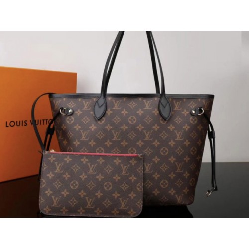 Louis Vuitton Monogram Canvas Neverfull Mm z czarnym skórzanym wykończeniem