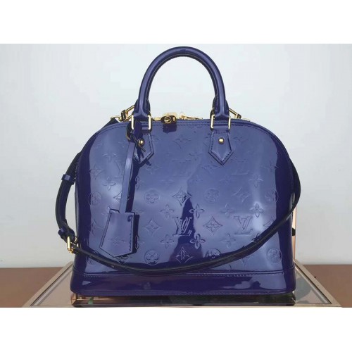 • Monogram Louis Vuitton Vernis Alma PM Niebieski m91611