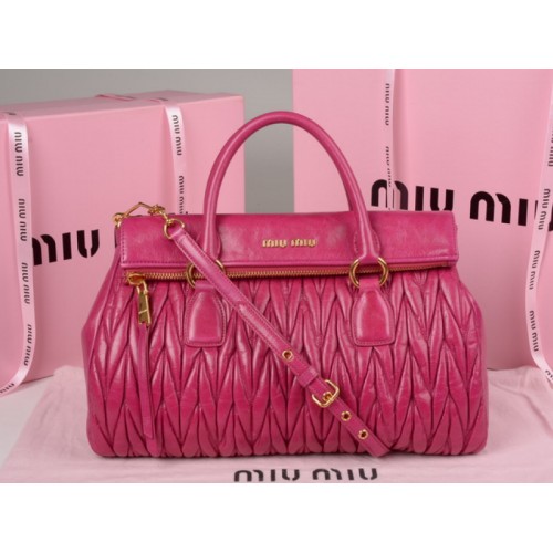 Miu Miu Glazed Matelasse Leather Zip Satchel Hot Pink