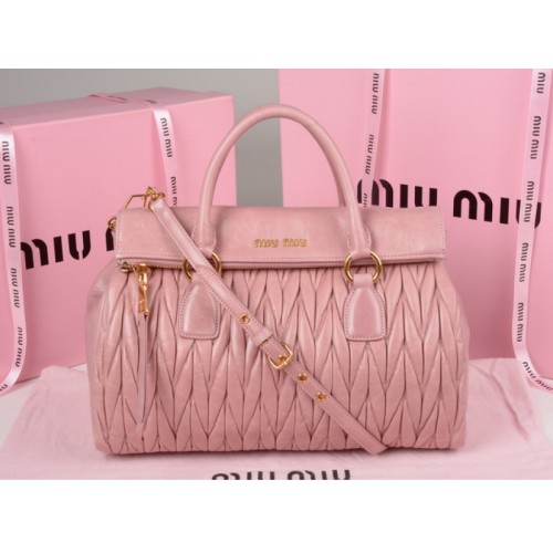 Miu Miu Glazed Matelasse Leather Zip Satchel Pink