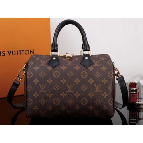 Louis Vuitton Monogram Canvas Speedy Bandouliere 25 z czarną skórzaną lamówką