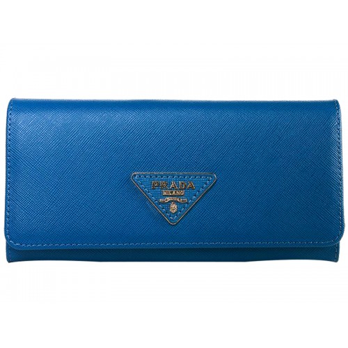 Portfel Prada Saffiano ze skóry z trójkątnym logo w kolorze niebieskim