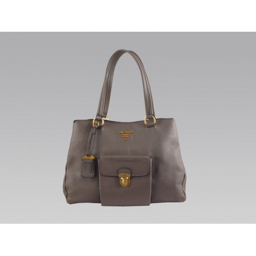 Torba Prada ze skóry bydlęcej średniej wielkości z kieszenią z przodu w kolorze szarym