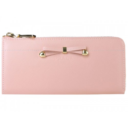 Portfel Prada Saffiano z zamkiem błyskawicznym i kokardką w kolorze różowym
