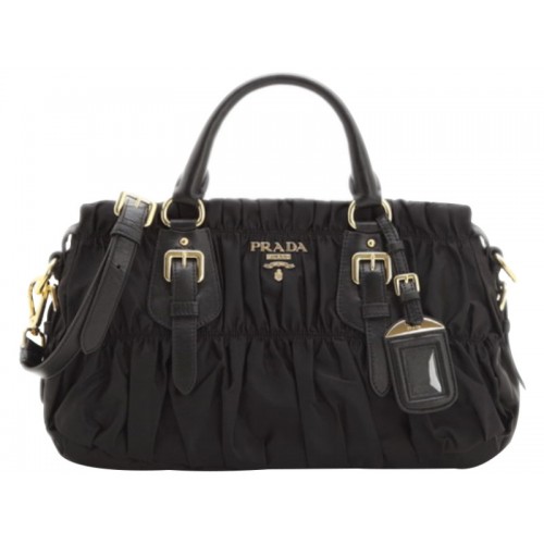 Torba Prada Tessuto Gaufre Nylon z uchwytem u góry, czarna