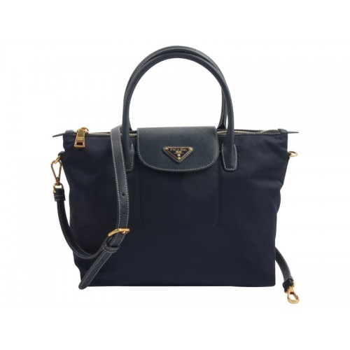 Torba Prada Tessuto Nylon ze skórzanymi wykończeniami w kolorze ciemnoniebieskim