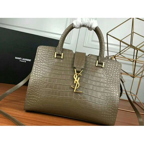 Saint Laurent Cabas Ysl Small w kolorze gładkiej skóry w kolorze szarym