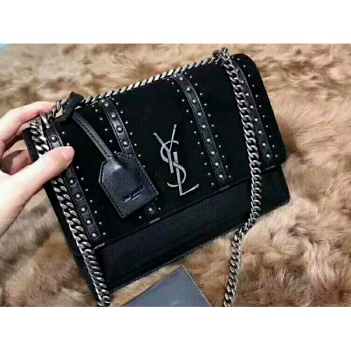 Saint Laurent Sunset Medium w kolorze czarnym ze skóry zamszowej z ćwiekami