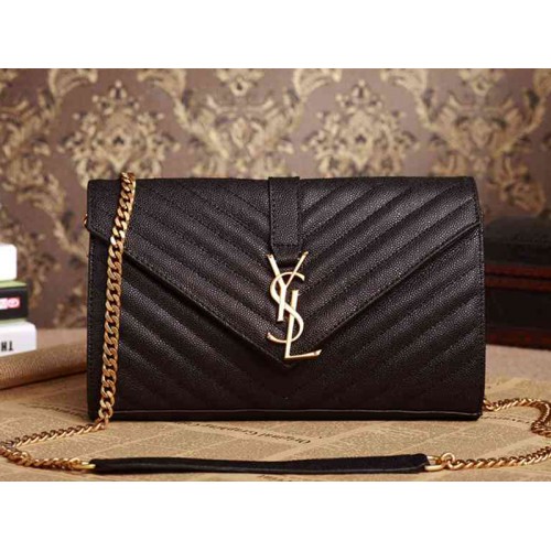 YSL Średniej wielkości torebka z monogramem, czarna, ziarnista, pikowana skóra