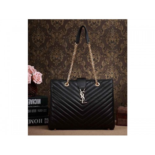 Torba na zakupy Yves Saint Laurent Classic Monogram z czarnej pikowanej skóry jagnięcej