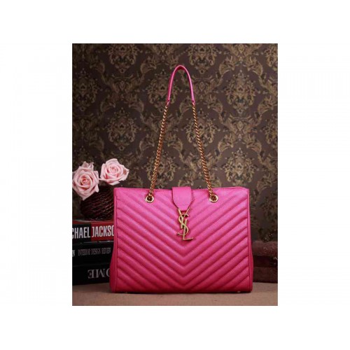 Torba na zakupy Yves Saint Laurent Classic Monogram w kolorze fuksji z teksturą skóry pikowanej Grain de Poudre