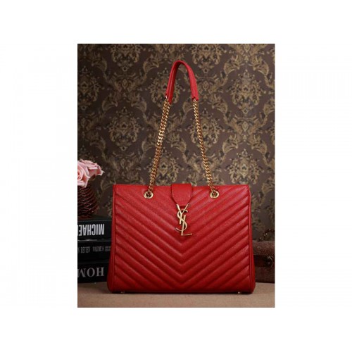 Yves Saint Laurent Klasyczna torba na zakupy z monogramem w kolorze szminki w kolorze czerwonym Grain de Poudre Teksturowana skóra Matelasse